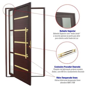 Itens Inclusos: 1 Porta completa montada com Fechadura, Batente Pivot devidamente embalada. Acompanha Puxador