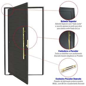 Porta Pivotante de Alumínio, Linha Super 25, Pintura Eletrostática Preta, 1 Folha de Abrir para o Lado Esquerdo, Lambris Horizontais, Puxador Milão 80 Cm Polido Dourado, Altura 210 Cm, Largura 120 Cm, Requadro 4,6 Cm, Garantia de 5 anos contra defeitos de fabricação. Ambientes Recomendados: Externo Acompanha Batedor: Sim Acompanha Batente: Sim Acompanha Fechadura: Sim Acompanha Guarnição: Não Acompanha Manual de Instalação: Sim Acompanha Trinco: Não Altura: 210 Ambiente Principal: Sala de Estar Cor: Preto Dourado Cor do Batente: Preto Cor do Produto: Preto Dourado Escala de Brilho: Fosco Espessura: 4.6 Isolamento Acústico: Não Itens Inclusos: 1 Porta completa montada com Fechadura, Batente Pivot devidamente embalada. Acompanha Puxador Lado de abertura: Esquerda Largura: 120 Largura do Batente: 4.6 Linha ou Coleção: Super 25 Manual de Montagem e Instalação: https://product-hub-prd.madeiramadeira.com.br/869683/documents/bb665c67-d5b3-45cc-9666-2c9478a0e80b53manualesquadriasaluminio.pdf Material da Dobradiça: Alumínio Material do Batente: Alumínio Material do Puxador: Alumínio Necessita Montagem: Não Origem do Produto: Nacional Peso: 35.16 Possui Grade: Não Tamanho: 210cm x 120cm Tipo de Dobradiça: Pivotante Tipo de Parede: Alvenaria Tipo de Porta: Pivotante Tipo de Puxador: Externo Vidro incluso: Não