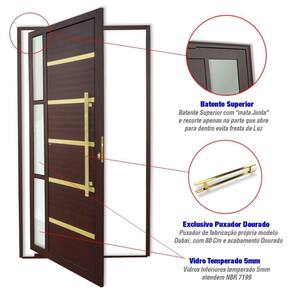 Porta Pivotante de Alumínio, Linha Super 25, Pintura Eletrostática Corten, 1 Folha de Abrir para o Lado Esquerdo, Vidros inferiores Lisos Incolores 5mm Temperados, Lambris Horizontais e 5 Frisos Escovados, Dourados e Envernizados, Puxador Milão 80 Cm Escovado Dourado, Altura 210 Cm, Largura 120 Cm, Requadro 4,6 Cm, Garantia de 5 anos contra defeitos de fabricação. Ambientes Recomendados: Externo Acompanha Batedor: Sim Acompanha Batente: Sim Acompanha Fechadura: Sim Acompanha Guarnição: Não Acompanha Manual de Instalação: Sim Acompanha Trinco: Não Altura: 210 Ambiente Principal: Sala de Estar Cor: Marrom Corten Dourado Cor do Batente: Marrom Cor do Produto: Marrom Corten Dourado Cor do Vidro: Incolor Escala de Brilho: Fosco Espessura: 4.6 Espessura do Vidro: 5 Isolamento Acústico: Não Itens Inclusos: 1 Porta completa montada com Fechadura, Batente Pivot devidamente embalada. Acompanha Puxador Lado de abertura: Esquerda Largura: 120 Largura do Batente: 4.6 Linha ou Coleção: Super 25 Manual de Montagem e Instalação: https://product-hub-prd.madeiramadeira.com.br/869588/documents/f865c7bb-8022-42c2-8e95-b684519a8d9b93manualesquadriasaluminio.pdf Material da Dobradiça: Alumínio Material do Batente: Alumínio Material do Puxador: Alumínio Necessita Montagem: Não Origem do Produto: Nacional Peso: 34.87 Possui Grade: Não Tamanho: 210cm x 120cm Tipo de Dobradiça: Pivotante Tipo de Parede: Alvenaria Tipo de Porta: Pivotante Tipo de Puxador: Externo Tipo de Vidro: Temperado Vidro incluso: Sim
