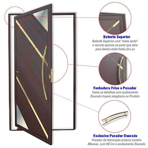 Apresentamos a nossa Porta Pivotante de Alumínio da Linha Super 25, com pintura eletrostática na cor Corten. Esta porta possui uma folha que abre para o lado esquerdo, proporcionando um design moderno e funcional. O vidro é do tipo Reflex Champanhe com 3mm de espessura, que adiciona um toque de sofisticação. A porta é caracterizada por lambris diagonais com 2 frisos diagonais, polidos, dourados e envernizados, que realçam a sua beleza. A porta é equipada com um puxador Athenas de 80 cm, polido e na cor dourada, que adiciona um toque de elegância. As dimensões da porta são de 210 cm de altura e 120 cm de largura, com um requadro de 4,6 cm. Além disso, oferecemos uma garantia de 5 anos contra defeitos de fabricação, assegurando a qualidade do nosso produto. Ambientes Recomendados: Externo Acabamento do Puxador: Polido Acompanha Batedor: Sim Acompanha Batente: Sim Acompanha Fechadura: Sim Acompanha Guarnição: Não Acompanha Manual de Instalação: Sim Acompanha Trinco: Não Altura: 210 cm codigo_ean: 7898721694188 Cor: Marrom Corten Dourado Cor do Batente: Marrom Cor do Produto: Marrom Corten Dourado Escala de Brilho: Fosco Espessura: 4,6 cm Espessura do Vidro: 3 mm Isolamento Acústico: Não Itens Inclusos: 1 Porta completa montada com Fechadura, Batente Pivot devidamente embalada. Acompanha Puxador Lado de abertura: Esquerda Largura: 120 cm Largura do Batente: 4,6 cm Linha ou Coleção: Super 25 Manual de Montagem e Instalação: https://product-hub-prd.madeiramadeira.com.br/869592/documents/58924634-f0d3-46a6-a3a0-5516962bb15181manualesquadriasaluminio.pdf Material da Dobradiça: Alumínio Material do Batente: Alumínio Material do Puxador: Aço Material Principal: Alumínio Necessita Montagem: Não Origem do Produto: Nacional Peso: 3692 kg Possui Grade: Não Tamanho: 210cm x 120cm Tipo de Dobradiça: Pivotante Tipo de Parede: Alvenaria Tipo de Porta: Pivotante Tipo de Puxador: Externo Tipo de Vidro: Controle Solar Vidro incluso: Sim