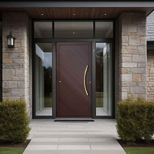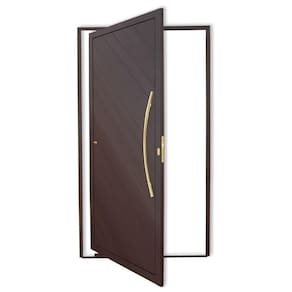 Porta de Aluminio Pivotante Lambril 210x120cm com Puxador Super Savana Brimak Marrom Corten Dourado