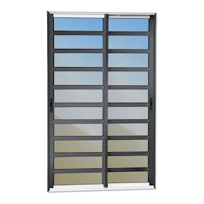 Porta de Correr com Travessas 2 Folhas Moveis 210 X 200 Elite com Fecho Automático Vidro Reflex Mix Preto