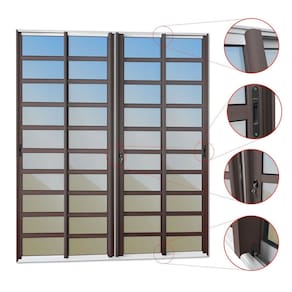 Porta de Correr com Travessas 4 Folhas Moveis 210 X 200 Elite com Fechadura Tetra Vidro Reflex Mix Corten