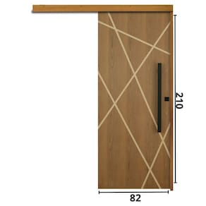 Porta de Correr Padrão Imbuia Agatha Trilho Embutir Puxador Barra Chata 800 Mm Preto 82 X 210 Esquer Natural