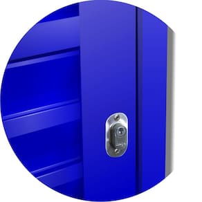 Porta de Correr Suspensa de Alumínio, Linha L.25, Pintura Eletrostática Azul, 1 Folha Suspensa de Correr para o Lado Direito, Fechamento tipo Veneziana, Fechadura Bico de Papagaio, Altura 210 Cm, Largura 80 Cm, Requadro 4,5 Cm, Garantia de 5 anos contra defeitos de fabricação..
