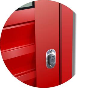 Porta de Correr Suspensa de Alumínio, Linha L.25, Pintura Eletrostática Vermelha, 1 Folha Suspensa de Correr para o Lado Direito, Vidro Mini Boreal 0,4cm, Fechamento tipo Veneziana na parte Inferior, Fechadura Bico de Papagaio, Altura 210 Cm, Largura 90 Cm, Requadro 4,5 Cm, Garantia de 5 anos contra defeitos de fabricação..