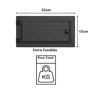 Porta de Forno a Lenha em Ferro Fundido Tijolinho 33x15cm, a peça é fundamental para deixar o fogo e o calor dentro do eletrodoméstico, o que faz com que os alimentos sejam preparados na temperatura certa.