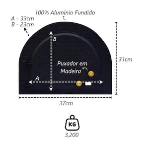 Porta de Forno Americana Fogão a Lenha Pizza Iglu G 37x31cm Porta do forno grande de alumínio fundido, usada como porta para forno de pizza, para fechar parte debaixo do fogão onde se coloca lenha, como porta de cinzeiro, pode ser usada também como porta do fogão, etc. OBS: Não usar para tampar a boca do fogão enquanto as chamas estiverem acesas. Características do Produto:Medidas da Porta: 33x23cm.Material: Alumínio Fundido.Medidas Aro: 37x31cm.Peso: 3,200Kg. Itens Inclusos:01 Porta de Forno Americana Fogão a Lenha Pizza Iglu G 37x31cm. Código: 1864MTMProdutoLojaPlast. Marca: Metal Mig