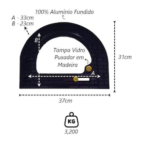 Porta do forno grande de alumínio fundido, usada como porta para forno de pizza, para fechar parte debaixo do fogão onde se coloca lenha, como porta de cinzeiro, pode ser usada também como porta do fogão, etc. OBS: Não usar para tampar a boca do fogão enquanto as chamas estiverem acesas.