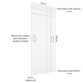 Folha de Porta Madeira Decorada 210x70cm Espessura 3,5cm -R40TPorta de Madeira Frisada tem o requadro em madeira de reflorestamento e reforço em madeira bilateral centralizado para colocação de fechadura. O enchimento é feito com colméia Honeycomb, produzido com papel semi-kraft com 160 folhas, o que confere maior resistência após a colagem da chapa de acabamento (Duratex).Modelo da Porta: GiroTipo de Madeira: MDFEscala de Brilho: Sem BrilhoLado de Abertura: Definido na instalaçãoTextura da Porta: FrisadaAcompanha Puxador: NãoOrigem do Produto: NacionalAmbiente Principal: InternoAcompanha Dobradiça: NãoQuantidade de Folhas: 1Preenchimento da Porta: ColmeiaComplexidade da Instalação: BaixaAcabamento: MelamínicoMaterial Principal Construção e Acabamento: MadeiraTonalidade: MarromCor Predominante: MarromTamanho do Produto: 210cm x 70cmElétrica: NãoPossui Friso: SimPossui Grade: NãoPossui Vidro: NãoAcompanha Trinco: NãoImune à Corrosão: NãoAcompanha Batedor: NãoAcompanha Batente: NãoAcompanha Fechadura: NãoAcompanha Guarnição: NãoNecessita Instalação: NãoAcompanha Olho Mágico: NãoResistência à Maresia: NãoResistência à Umidade: NãoAcompanha Ficha Técnica: SimPossui Isolamento Acústico: NãoAcompanha Manual de Instalação: SimMarca: Aqui MoveisItens Inclusos: FolhaLinha ou Coleção: MelamínicaMedida do Vão (A x L): 207cm x 72 cmPeso (kg): 13.21Altura (cm): 210Largura (cm): 70Espessura (cm): 3.5Informações Complementares: Folha de Porta, Produto não acompanha Batente, fechadura, dobradiças e guarnição. Marca: AQUI MOVEIS Marca: AQUI MOVEIS Marca: AQUI MOVEIS