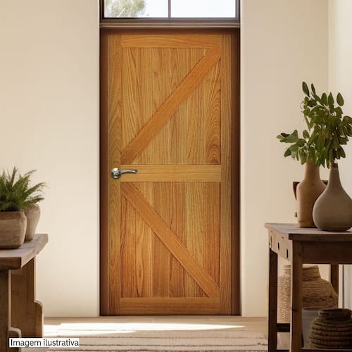 A JOMADI apresenta a porta modelo Celeiro, produzida em madeira maciça Tauari, conhecida por sua durabilidade, resistência e belo acabamento natural. Seu design rústico com travessas diagonais em Z valoriza ambientes com estilo campestre, industrial ou moderno-rústico, sendo ideal para uso interno ou externo, especialmente em cozinhas, lavabos, despensas ou como porta de correr tipo celeiro. Além da estética marcante, o Tauari é uma madeira de densidade média que oferece excelente resistência ao empenamento e alta durabilidade, garantindo longevidade ao produto mesmo em locais com variação de umidade. A estrutura reforçada com travessas horizontais e diagonais proporciona estabilidade adicional, evitando deformações com o tempo. Ambientes Recomendados: Interno Acompanha Batedor: Não Acompanha Batente: Não Acompanha Dobradiça: Não Acompanha Fechadura: Não Acompanha Guarnição: Não Acompanha Manual de Instalação: Não Acompanha Puxador: Não Acompanha Trinco: Não Altura: 210 cm Ambiente Principal: Sala de Estar codigo_ean: 7908000029775 Cor: Natural Cor do Produto: Natural Elétrica: Não Escala de Brilho: Fosco Espessura: 3,3 cm Informações Complementares: A madeira Tauari é uma excelente escolha para a fabricação de portas, unindo beleza natural, resistência e versatilidade. De tonalidade clara, entre bege e castanho claro e com textura fina, proporciona um acabamento sofisticado e uniforme, valorizando qu Itens Inclusos: Folha de porta Lado de abertura: Definido na Instalação Largura: 70 cm Manual de Montagem e Instalação: https://product-hub-prd.madeiramadeira.com.br/261415787/documents/bdc4f072-1bfb-49ec-be62-4c0a957f72cf3248625347917592340465713.pdf Marca: Jomadi Necessita Montagem: Não Origem do Produto: Nacional Peso: 36 kg Possui Grade: Não Resistência à Água: Sim Tamanho: 210 x 70 x 3,3 Textura da Porta: Entalhada Tipo de Madeira: Tauari Tipo de Porta: Abrir Vidro incluso: Não Marca: Não Informado