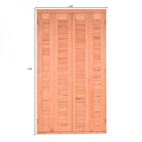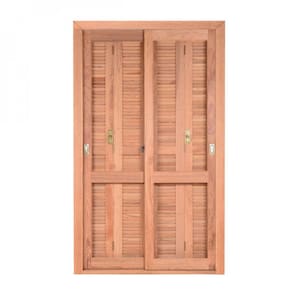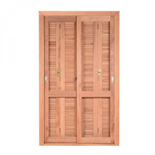Porta estilo sacada com 4 venezianas pantográficas (cotovelo) e 4 caixilhos pantográficos (cotovelo), ambas as venezianas possuem dobradiças com acabamento em ouro velho, 2 cremonas de embutir, trilho de alumínio. Os caixilhos possuem trilho de alumínio e duas cremonas de embutir. Acompanha guarnição (vistas) 6 cm PARA UM LADO. O tom da madeira pode variar, por se tratar de um produto natural. A matéria prima (madeira) passa por um processo de secagem de 18 meses, incluindo secagem em estufa, os produtos saem da fábrica com lixamento pronto para pintura ou aplicação de selador e verniz.