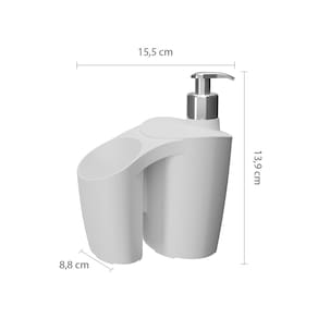 Especificações Dimensões AxLxP (mm): 139x155x88Material: PolipropilenoGarantia: 90 dias junto ao fabricanteCapacidade: 450ml Itens inclusos:1 Porta Detergente e Esponja