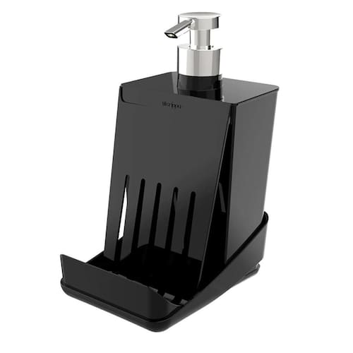 Porta Detergente Preto com Suporte para Esponja Smart S Crippa Dispenser para Pia Cozinha.