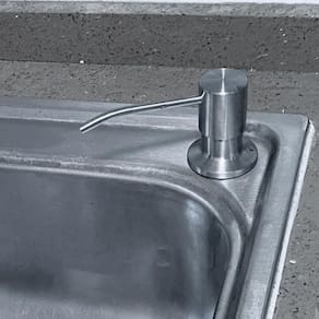Porta detergente sabao dispenser de embutir inox 304 350ml Dispenser de detergente embutido 350 ml inox ========== Com qualidade e sofisticação, o dispenser de detergente inox premium da flvx hidro possui um design moderno e inovador, trazendo elegância para a sua cozinha. ========== Benefícios: Ideal para cozinhas e banheiros; Aço inox premium qualidade flvx hidro; Frasco de 350ml em pe; Pump removível para abastecimento superior. ========== Informações técnicas: Diâmetro de instalação: 2,4 a 3,5 cm; Espessura máxima de instalação: 4,5 cm; Materiais: aço inoxidável 304, elastômeros e plástico de engenharia; de 5 anos; Conteúdo da embalagem: 1 dispenser e 1 frasco 350 ml.