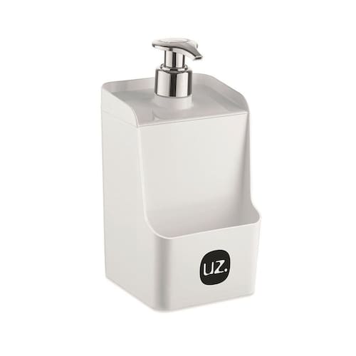 Porta Detergente Slim Dispenser Suporte para Esponja UZ Branco Porta Detergente Slim Sabão Líquido Dispenser Com Suporte Para Esponja Plástico UZ