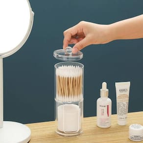 Porta Disco de Algodão Organizador Transparente: Praticidade e Elegância para Seu Dia a Dia Mantenha seu ambiente sempre organizado com um toque de sofisticação. Prático, higiênico e acessível, ideal para discos de algodão e cotonetes.