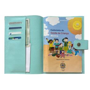 Porta Documentos e Caderneta de Vacinacão em Couro Sintético - Cor: Verde Água