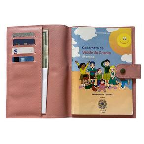Porta Documentos e Carteira de Vacinas Bebê em Couro Sintético Salmão