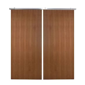 Este tipo de porta é composto por duas folhas de madeira que se abrem para os lados, proporcionando uma entrada generosa e um visual moderno. O "kit aparente" refere-se ao sistema de trilhos e ferragens de alumínio que ficam visíveis, conferindo um toque estético industrial ou contemporâneo ao ambiente.