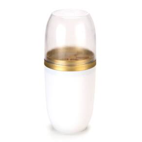 Cor/Acabamento: Base Branco Fosco, Divisória Dourado Fosco, Tampa Transparente
