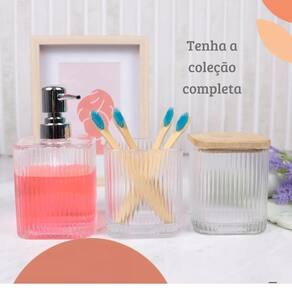 Mantenha a sua rotina de higiene organizada e elegante com o Porta Escova de Dente de Vidro com Tampa de Bambu Lines da Lyor.