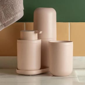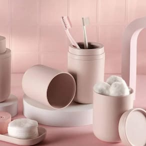 Porta Escova de Dentes com Tampa Bold Rosa Duna para Banheiro Lavabo Pia Ou.