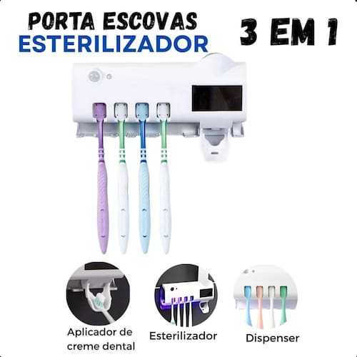 Porta escova dentes esterilizador ultravioleta dispenser Descrição do anúncio: O porta escova de dentes suporte de pasta automático e esterilizador uv da solar é uma solução avançada para manter suas escovas de dente livres de bactérias. Utiliza tecnologia uv e fotocatalisador, eliminando 99,9% dos micro-organismos. Com carregamento solar e por usb, seu sistema de bomba de vácuo evita desperdício de pasta de dente.