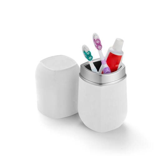 Funcionalidade: Armazena escovas e pasta (com tampa).
