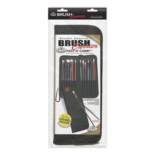 Royal brush-keep n 'carregar escova operadoras com zíper. Mantenha todas as suas escovas protegido e em um só lugar. Esta bolsa é projetado para armazenar até dezesseis comprida com escovas. Este pacote contém um 12 1/2 x 14 – 1/2 polegada operadoras e seis escovas de iniciação. Design: Longo tratados e preto. Importado.