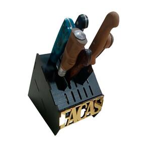 Porta Facas Faqueiro Organizador Cozinha Gourmet Decor Gold Porta Facas - Faqueiro com Letreiro em Acrílico Dourado para Cozinha e Área BBQ Organize sua cozinha ou cantinho do churrasco com estilo e praticidade usando este Porta Facas Faqueiro, ideal para ambientes gourmet e áreas BBQ. Projetado para acomodar até 14 facas de diversos tamanhos, incluindo cutelos e facas padrão, oferece uma solução eficiente para organizar sem danificar as lâminas. Fabricado em MDF resistente com acabamento clean, este suporte une durabilidade e design elegante. O letreiro em acrílico dourado com a palavra Facas confere um toque moderno e decorativo, valorizando seu espaço, seja na cozinha residencial, restaurante, cafeteria ou área gourmet externa. Perfeito para quem busca organização e decoração refinada, pode ser posicionado próximo à bancada, mesa ou churrasqueira, facilitando o acesso rápido e seguro às suas facas. Além de funcional, é uma excelente opção de presente para chefs, apaixonados por gastronomia e amantes do BBQ que valorizam uma cozinha prática e estilosa. Transforme sua rotina culinária e sua área gourmet com um porta facas que combina eficiência, design e versatilidade. DIMENSÕES APROXIMADAS: - Porta Facas - Faqueiro: Altura: 22 cm x Largura: 14 cm x Profundidade: 24 cm CARACTERÍSTICAS DO PRODUTO: - Porta Facas artesanal em MDF com letreiro dourado, suporta até 14 facas de vários tamanhos. Design funcional e resistente, ideal para cozinha e estabelecimentos. CUIDADOS: - Limpe com pano levemente umedecido para melhor conservação. DO PRODUTO: - Seu produto é embalado com cuidado para garantir a entrega em perfeito estado. Em caso de imprevistos, oferecemos e troca para sua total satisfação. Imagens meramente ilustrativas. Produto artesanal sujeito a variações de cor e tonalidade.