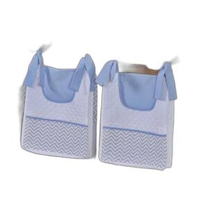 Porta Fralda Organizador Quarto de Bebê Menino Menina 2 Peças Com Laço Cor: Chevron azul bebê O porta fraldas é ideal pra ter sempre a mão os produtos mais no dia a dia com seu bebê. Cada porta fralda tem 2 bolsos frontais, onde podem ser colocados produtos pequenos, e um bolso maior pra colocar as fraldas, roupas, toalhas ou itens maiores. Praticidade e decoração em um só produto. Sugestão de uso: Pendurado em varão ou no berço Contém na embalagem: 2 porta fraldas MEDIDAS: 38cm alt x 32cm larg x 10cm prof COMPOSIÇÃO: Matelado de microfibra 100% poliéster Tecido estampado e liso percal 180 fios 100% algodão - Foto ilustrativa, tonalidade da cor pode variar um pouco no produto real Produtos fabricados em Ibitinga-SP, a Capital Nacional do Bordado e do Enxoval. Marca: Não Informado