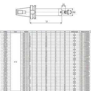 ESPECIFICAÇÕES DO PORTA FRESA FACEAR MODELO BT40 - 22 - 55 - MAS 403 BT/ DIN 3937