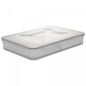 Especificações Técnicas: Dimensões: 26,5cm (C) x 19cm (L) x 4cm (A) Peso: Leve e fácil de manusear. Conteúdo da Embalagem: 1 Porta Frios com Divisória e Tampa
