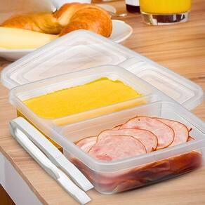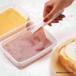 O Porta Frios Duplo com Pinça - Nitron é ideal para armazenar frios e embutidos fatiados e conservá-los por mais tempo em geladeira, preservado o sabor, textura e aroma. É feito de plástico, possui tampa e acompanha pinça própria para pegar fatias.