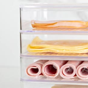 Com dois compartimentos, você pode separar e organizar diferentes tipos de frios de maneira fácil e acessível. A transparência do acrílico permite que você identifique rapidamente o conteúdo de cada compartimento, garantindo praticidade no seu dia a dia na cozinha. Com um design minimalista e funcional, o Porta Frios é o complemento ideal para qualquer estilo de cozinha. Seu formato compacto e elegante se adapta perfeitamente a qualquer ambiente, proporcionando harmonia visual. Além disso, as ranhuras na superfície interna do porta frios evitam que os alimentos entrem em contato direto com a base, preservando sua frescura e qualidade por mais tempo. A linha Clear Fresh é sinônimo de praticidade e cuidado com os alimentos. Com o Porta Frios Duplo, você mantém seus frios organizados na geladeira, facilitando o acesso e prolongando sua vida útil. Além disso, o produto é livre de BPA, garantindo a segurança da sua família. Para mantê-lo sempre limpo e bonito, basta higienizá-lo com sabão neutro e uma esponja macia, evitando o uso de produtos abrasivos.Especificações do produto:Dimensões: 9.5 x 15 x 20cm Peso: 310g Material: Acrílico transparente Capacidade: Duplo compartimento para armazenamento de frios Cuidados: Não é adequado para uso no freezer ou micro-ondas. Lave com sabão neutro e esponja macia, evitando produtos abrasivos. Livre de BPA.