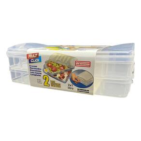 Porta frios duplo transparente prático com tampa click 2 lts Pote retangular peq.C/02 bdj cl02 2,00 lts transx005fx000d x005fx000d O porta frios com duplo é uma ótima opção para manter o alimento fresquinho até a hora de ser consumido. Com design atraente e produzido em materiais de qualidade, o porta frios agrega beleza e funcionalidade em um só produto possui travas multiclick para ter mais durabilidade o alimento.x005fx000d x005fx000d Pode ir ao microondas, frezer, lava louças e lava pratos.x005fx000d x005fx000d Total 2 potes de 1 litro cada com tampa e trava,x005fx000d x005fx000d Obs. Instruções de uso na embalagemx005fx000d x005fx000d Características/medidas aproximadas:x005fx000d x005fx000d Material: polipropileno livre de bpax005fx000d x005fx000d Altura: 8 cmx005fx000d x005fx000d Largura: 16,6cmx005fx000d x005fx000d Comprimento: 25,6cmx005fx000d x005fx000d Ref. Cl02x005fx000d x005fx000d São bernardo