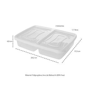 Porta Mantimentos para frios. Pote com tampa de plástico e duas repartições. Confeccionado em polipropileno, material atóxico, livre de Bisfenol A (BPA Free). Pode ser levado para o micro-ondas e para o congelador ou freezer. A Plasútil é a maior fabricante de utilidades plásticas do Brasil, a Loja Plasútil tem garantia e venda direto de fábrica.