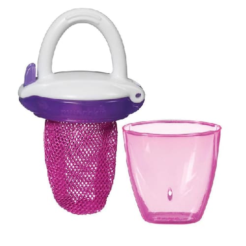 Estimula o processo de alimentação independente do bebê além de prender o porta fruta na roupa da criança e evitar que ele caia no chão.