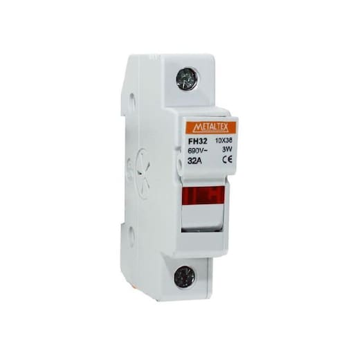 Porta Fusível 10X38Mm 1 Polo 32 Amperes Com Indicador De Fusível Rompido Modelo Fh Metaltex Porta fusível para montagem em trilho DIN, modelo de 32A para fusíveis de 10x38mm. Possui indicador de fusível rompido. De acordo com IEC60947-3. Corrente Nominal: 32 A Número de Pólos: 1 Tamanho do Fusível Aplicável: 10x38mm Dissipação Máx. Do Fusível: 3W Cabo Aplicável: 1,5 25mm Tensão Nominal: 690V Marca: Não Informado