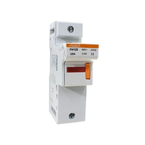 Porta Fusível 22X58Mm 1 Polo 125 Amperes Com Indicador De Fusível Rompido Modelo Fh Metaltex Porta fusível para montagem em trilho DIN, modelo de 125A para fusíveis de 22x58mm. Possui indicador de fusível rompido. De acordo com IEC60947-3. Corrente Nominal: 125 A Número de Pólos: 1 Tamanho do Fusível Aplicável: 22x58mm Dissipação Máx. Do Fusível: 9,5W Cabo Aplicável: 4 50mm Tensão Nominal: 690V Ean: 7899112750223