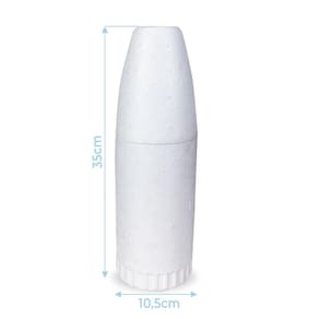 Altura: 35cm Diâmetro: 10,5cm Diâmetro boca: 8cm Capacidade para um garrafa de 600ml Material: Polietileno EPS