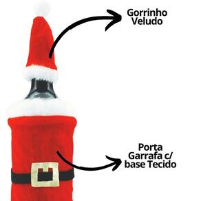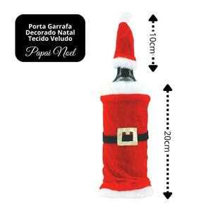01 Porta Garrafa Natalino Veludo Vermelho Estilo Roupa Papai Noel