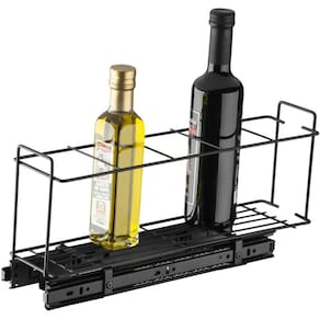 O porta garrafas deslizante em aço carbono 1020 cromado, é o produto perfeito para organizar e armazenar suas garrafas de óleo, azeite, vinagre ou enlatados de forma prática e segura. De fácil instalação podendo ser colocado em qualquer armário, medindo largura de 10cm, 19cm de altura e 41cm de comprimento, tornando-o ideal para uso doméstico ou comercial. Feito de aço resistente, comporta até 5 garrafas de temperos. As corrediças deslizantes laterais proporcionam fácil acesso aos frascos de temperos, permitindo que você os alcance rapidamente sem a necessidade de mover outros itens ao redor. Este organizador é uma solução prática e estilosa para manter sua cozinha organizada e seus ingredientes facilmente acessíveis durante o preparo das refeições.