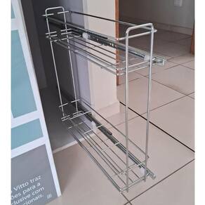 Garantia: 6 meses / Peso: 1,8kg / Cor predominante: cromado / Referência: 1022022790; Dimensões: 15cm (L) x 48cm (A) x 46cm (P) para vão livre de 17cm; Dimensões necessárias no módulo de instalação: 12cm (L) x 59cm (A) x 47cm (P); Capacidade: 8kg; Conteúdo: 1 porta temperos deslizante; Tipo de fixação: lateral, permite a instalação em ambos os lados do armário; Materiais: aço carbono cromado e aço inox; Obs.: o produto do anúncio é na cor cromado, imagens de demais cores são apenas ilustrativas.