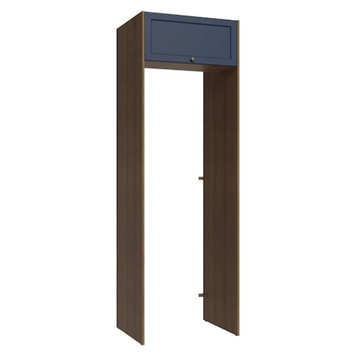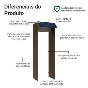 A porta basculante possui sistema de pistão a gás, que a mantém suspensa quando aberta, garantindo ainda mais segurança no dia a dia. O acabamento de alta resistência na combinação de amadeirado Rustic com azul possui textura suave ao toque, trazendo personalidade a sua cozinha.