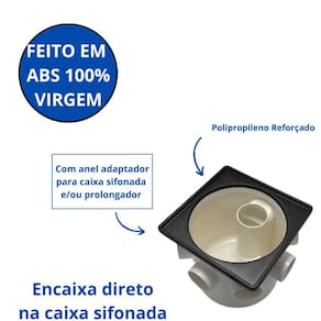 Informações técnicas: • Medida interna: 15 X 15 cm; • Possui encaixe adaptador para cano prolongador e caixa sifonada de 100 mm; • Materiais: plástico de engenharia; • Garantia de 5 anos; • Conteúdo da embalagem: 1 porta grelha.