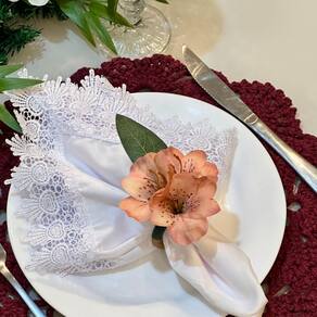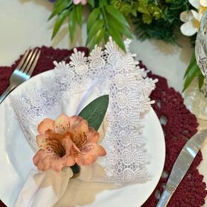 Transforme sua mesa com a beleza única e suave da astromélia. O porta guardanapo traz um toque especial, encantando seus convidados e deixando o ambiente mais sofisticado e acolhedor.