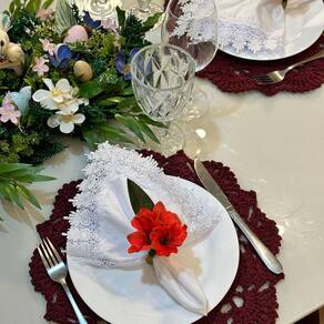 O tamanho foi cuidadosamente projetado para se ajustar perfeitamente ao seu guardanapo, garantindo não só beleza, mas também funcionalidade. Ele é versátil e se adapta a diferentes arranjos de mesa, proporcionando uma decoração elegante e charmosa.