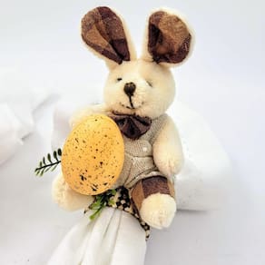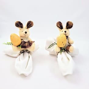 Porta Guardanapo Com Coelho Páscoa Mesa Posta Kit 2pc A decoração da Mesa Posta de Páscoa merece um luxuoso Porta Guardanapo como este. É composto por um casal de coelhos marrom e bege. Vem conhecer toda a coleção para decoração de Páscoa e arrase na sua recepção.